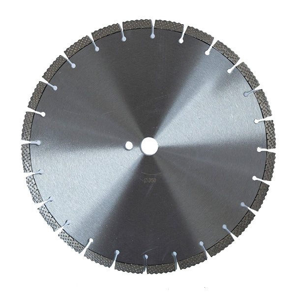 Application: 350mm x 12mm Laser welded diamond saw blade with special shape segments for fast cutting